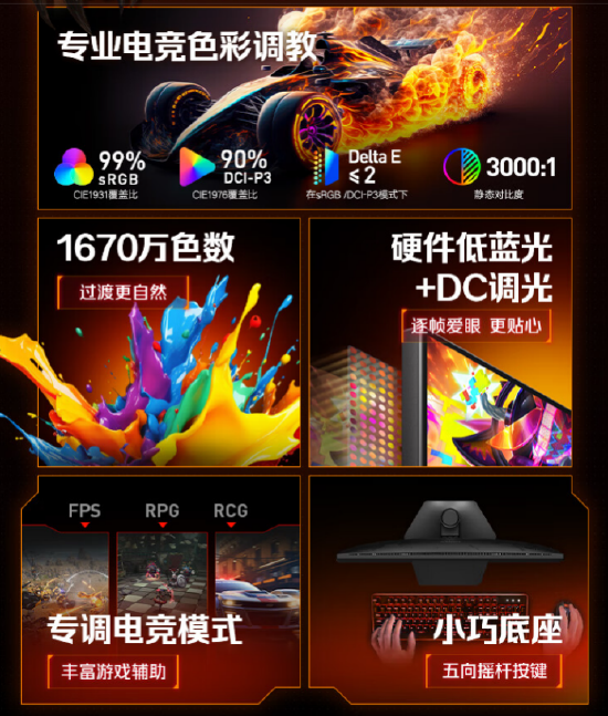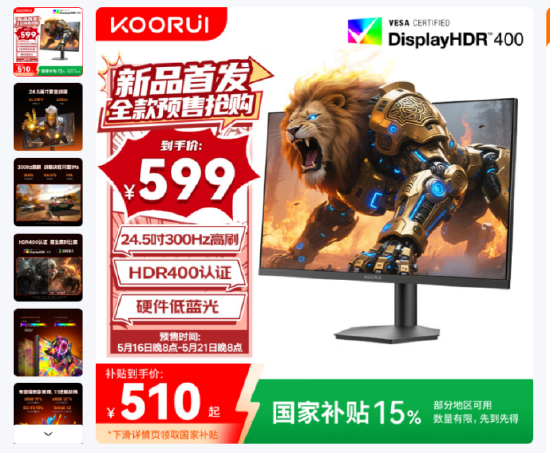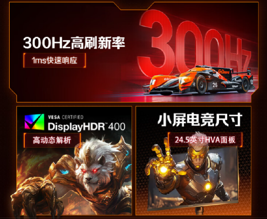 凭借300Hz超高刷新率、HDR 400认证、硬件级低蓝光等高规配置,直接将超高刷电竞显示器的价格门槛砍至百元级市场。