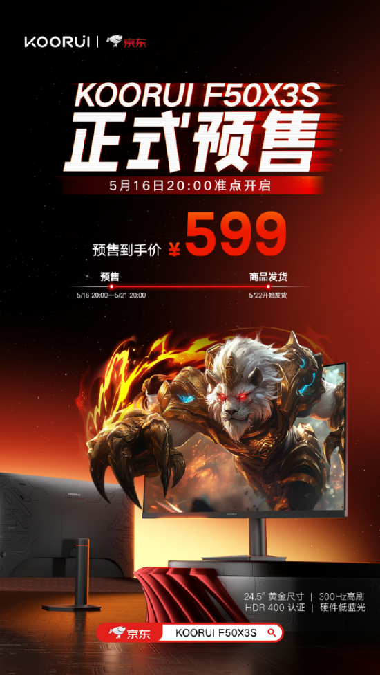 2025年5月16日,科睿(KOORUI)正式推出一款高性价比的电竞显示器新品——24.5英寸300Hz高刷电竞屏F50X3S,售价仅为599元。作为之前显示器行业的“价格屠夫”这次再次“挥刀”,在618到来之际推出这样一款重磅新品。