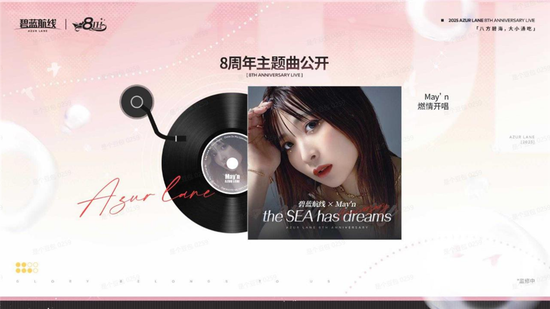 碧浪为歌,八载航程铭记着携手的约定!当晚19:00,数万名指挥官如约来到直播间,与《碧蓝航线》共度这个直播之夜,直播现场,《碧蓝航线》全新创作的8周年主题曲《the SEA has dreams》首次亮相,本主题曲由知名歌手May'n燃情演唱,引发现场观众强烈共鸣。