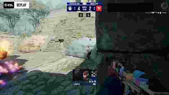 下半场攻守互换。s1mple一把P250配合队友中路佯攻,队友去B放下雷包,CT三回二成功拿下手枪局。