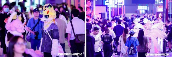 巨大的四叶草场馆内,灯光炫目,音乐轰鸣,Coser在场内穿梭,明星现身互动演出……DreamHack首次来到中国,即点燃电竞与电子游戏爱好者的狂欢情绪:水友赛化身大型开黑现场,更多玩家在为激烈的电竞对决欢呼。