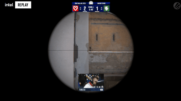 IEM达拉斯2025 B组胜者组MOUZ对阵Falcons。图一Dust2 MOUZ全员火力全开血虐对手,图二MOUZ连拿11分将比赛拖入加时成功逆转局势2-0带走Falcons挺近四强。