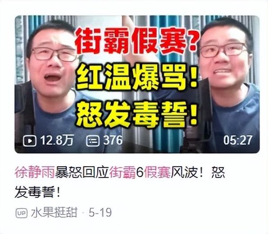 加上因为自身的直播风格,徐静雨拥有大量“黑粉”,在遇到对手发视频控诉主办方“假赛”时,自然而然会被人往更差的方向联想。当晚直播时,面对弹幕的质疑和指责,他继续沿用了平时直播的风,当场与弹幕直球对线,虽然场面戏剧且滑稽,但无疑让“官方假赛”这个话题,有了更高的关注度。