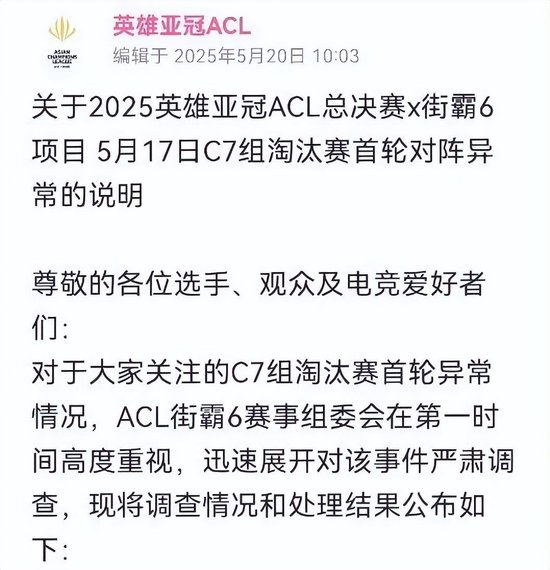 “几木子君”另有其人如此离奇的事故,赛事官方却在舆论发酵三天后才给出了回应。5月20日,街霸玩家等来了ACL官方的正式说明: