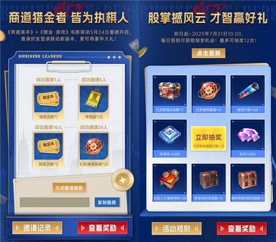 当资本市场的暗流与生存游戏的硝烟交汇,谁才是真正的"操盘手"?《商道高手》×《猎金·游戏》联动版本现已上线,欢迎各位进入游戏亲自体验。