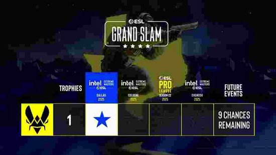 接下来,Vitality还有9次机会去争夺三个符合条件的奖杯,而今年还有IEM 科隆站、EPL S22还有IEM 成都站三项大满贯赛事等待着Vitality,如果这支国际纵队能在2025年下半赛季中保持他们目前的状态,在上述三项赛事中捧杯,那么他们就将史无前例地同一年同时两次捧起大满贯。