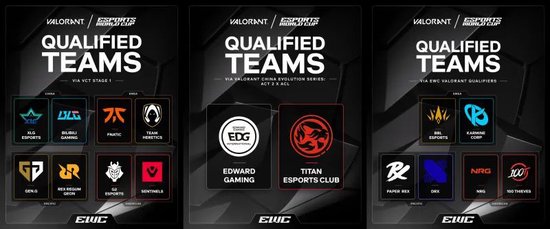 在VCT联赛第一赛段四大赛区全部结束后,已有八支战队率先锁定EWC席位。CN赛区第一阶段冠亚军XLG和BLG不仅将前往多伦多首次登上大师赛的国际舞台,同时也斩获EWC的参赛资格。美洲赛区决赛队伍G2与SEN、太平洋赛区新科冠军RRQ携手GEN同样成功前往利雅得。EMEA赛区因技术问题暂停比赛一周后才结束季后赛争夺,最后以FNC在第一赛段总决赛中横扫击败TH,两队携手晋级EWC而告终。