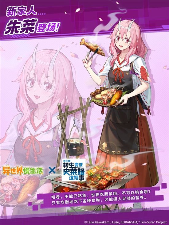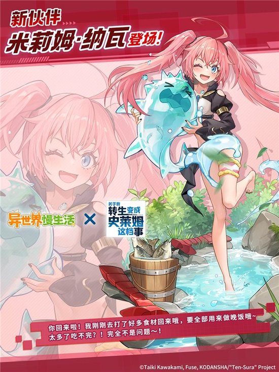 随着联动开启,来自《关于我转生变成史莱姆这档事》的五位联动角色重磅亮相异世界——利姆鲁、朱菜、米莉姆、红丸、迪亚波罗,成为玩家们的经营好伙伴,共同开启异世界悠闲经营慢生活。