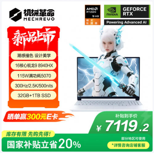采用全新外观风格的机械革命蛟龙16Z Pro游戏本已在京东商城首发预约!这款新品以清新的海盐白为主色调,搭配天蓝色的尾部点缀,瞬间带来清爽的视觉冲击,成功将“撞色美学”融入高性能游戏装备。首发价格: 8999元,叠加国补后售价7119.2元,并且首发福利,晒单送300元E卡。