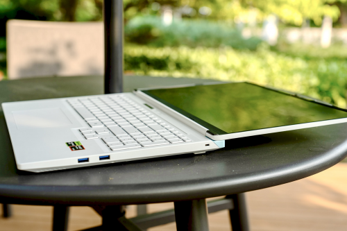 蛟龙16Z Pro采用了机械革命今年全新打造的模具。其A面选用了航空级镁合金材质,经过电泳工艺处理呈现优雅的海盐白色,边缘更运用纳米级超声铣削工艺精心打磨,不仅提升了外观质感和手感,也增强了耐用性。亮面天蓝色的LOGO巧妙地点缀在海盐白机身上,和谐而醒目。