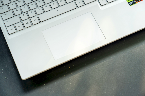 该机配备了具备1600万色RGB背光的全尺寸键盘(出厂默认冰蓝色背光,质感出色),以及一个布置在掌托偏左侧、尺寸比例符合操作习惯、点击确认感强的触摸板。