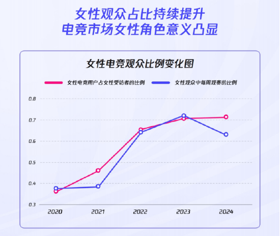 《报告》显示,女性用户规模扩大正在为全球电竞产业发展提供新支撑。提升女性电竞选手比例与女性用户观赛体验将成为电竞发展的重要方向。全球调研显示,英国女性电竞用户比例显著高于男性,新加坡、冰岛、日本、沙特电竞用户性别比例相对均衡。中国女性观众也成为了线下观赛主力,比例由2020年的36%升至2024年的71.8%。