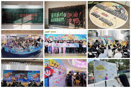 本次高校联赛期间,全国各地蛋友碰碰会纷纷启动应援组织热潮,其中 #集美啦蛋仔高校赛涂鸦秀 活动充分彰显了碰碰会的品牌影响力 —— 来自全国蛋友们的 3000 份涂鸦祝福,以创意笔触勾勒青春活力,共同汇聚于学年总决赛冠军斗篷之上,让每一笔色彩都成为热血竞技的见证,为赛事注入年轻群体的炽热能量。
