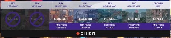 系列赛在森寒冬港、霓虹町、深海明珠和莲华古城四张地图展开(前两张为PRX自选图,后两张为FNC选择)。每张地图都战至命悬一线:PRX以13-11赢下森寒冬港,FNATIC经过加时鏖战17-15险胜霓虹町,PRX则以13-10拿下深海明珠,最终在莲华古城以14-12锁定胜局。