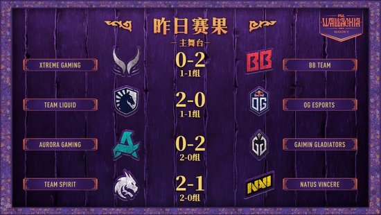 PGL瓦拉几亚S5瑞士轮第三日比赛结束,XG在与BB的比赛中0-2落败,进入1-2组;Tidebound则是两局碾压战胜Wildcard,进入2-1组。