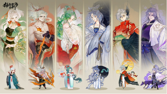 《指间山海》的国风美学不仅体现在画面风格上,更渗透于角色设计的每一个细节。游戏以“考据式创作”为理念,将《山海经》文献与现代审美融合,塑造出兼具文化厚度与视觉张力的角色群像。