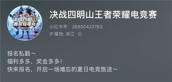 更多赛事讯息,请关注小红书@决战四明山王者荣耀电竞赛
