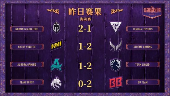 PGL瓦拉几亚S5淘汰赛首日四场胜者组首轮的比赛全部结束,GG、XG、Liquid与BB各自战胜对手晋级胜者组半决赛,Tundra、NAVI、Aurora和Spirit则落入败者组首轮。
