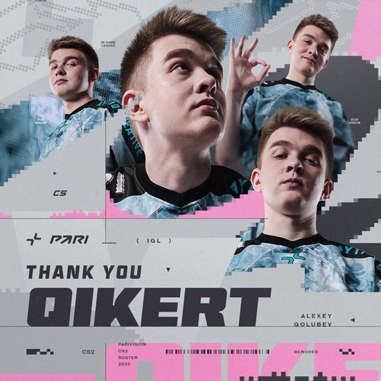 PARIVISION宣布已将Qikert下放至替补席,结束了这位26岁选手在主力阵容长达18个月的效力时光。