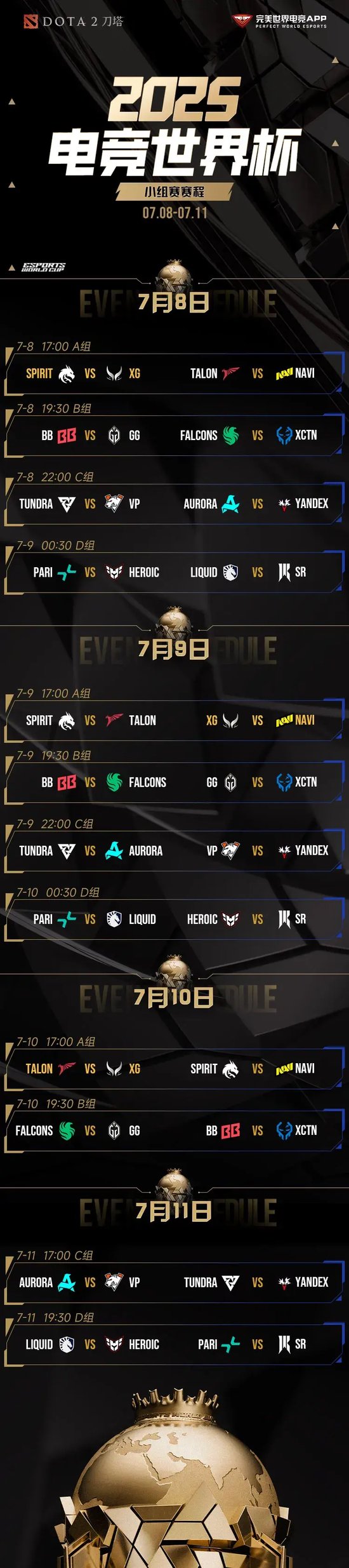 电竞世界杯DOTA2项目将在今日开赛,XG将在今日17:00对阵Spirit,比赛为Bo2。