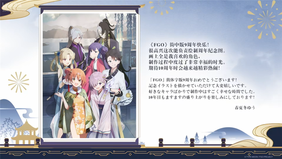 此外,《FGO》还为御主准备了九周年简中版专属SD,这些Q版角色后续也会上线QQ和微信表情包。今年的主视觉图则由春夏冬ゆう绘制,当然春夏冬ゆう也为御主献上了9周年祝福,本次的主视觉图同样会制作为纪念礼装实装到游戏内。