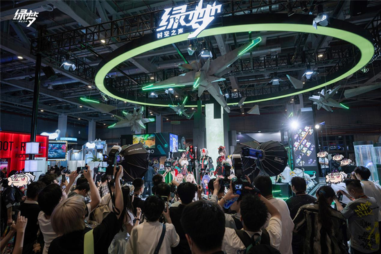 《绿梦:时空之声》的展台效果完美契合了游戏本身的世界观——在这个虚构的近未来世界,巨大的侵蚀裂隙撕裂了天空,名为“大侵蚀”的巨大天灾正逐步崩解濒临毁灭的文明,玩家将踏入裂隙,穿梭于霓虹闪烁的未来都市、荒芜的辐射废土,还有神秘的中古文明与巨龙翱翔的远古时代,开启一场场热血激昂的战斗。