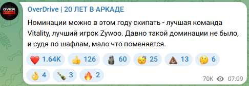 近日,独联体知名爆料人、Spirit战队星探OverDrive在个人社交媒体账号发布动态,谈到了关于对今年HLTV年度奖项的看法与预测。他认为Vitality将顺理成章的成为年度最佳战队。