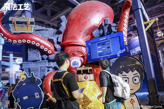 而在bilibili游戏独立游戏展台,各处独立游戏试玩区也是人流如潮,气氛热烈。还有《魔法工艺》与《潜水员戴夫》联动打造的大王鱿鱼巨型雕塑更是成为全场焦点,吸引路过玩家纷纷打卡拍照。