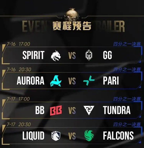 · 西欧赛区:Gaimin Gladiators(GG)、Team Liquid(液体)、Falcons、Tundra Esports