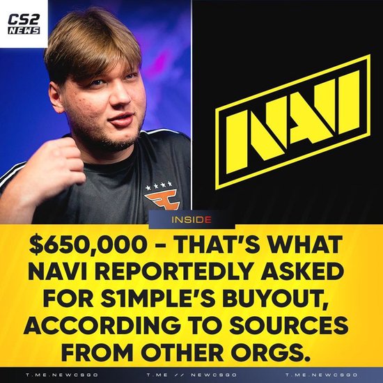 “我们的可靠消息来源报告称,Major结束后,有三支队伍联系了Natus Vincere,商讨购买s1mple事宜。NAVI俱乐部要价65万美元——这是这位传奇选手的起始价格,且可协商。”