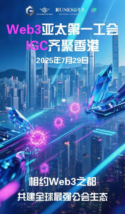 为把握这一具有里程碑意义的历史性机遇,一场志在重塑行业格局的顶级盛会——由 IGC(工会)、IGT、Runesoul、AIFortuna 以及非小号(Feixiaohao.ai)五大行业核心力量联合主办的“Web3 领袖峰会暨GameFi生态应用开发者大会”,将于 2025 年 7 月 29 日在亚洲金融中心中国香港盛大启幕。