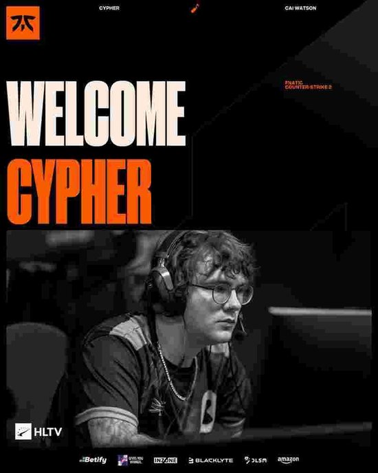 今天晚上fnatic俱乐部在社交平台上宣布招入CYPHER作为战队新成员,他入队之后将会填补MATYS离队后的空缺。