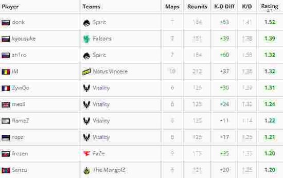 目前IEM 科隆站的参赛选手中,Rating排名第一的是donk,他以7图1.52的Rating暂列第一,他有希望在科隆收获这枚特殊的MVP奖牌。