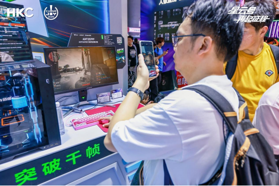 说到硬件产品,HKC展台这次带来了多款高性能电竞显示器,其中尤以巅峰擂台区域的HKC GS32UK性能最为出色,其具备4K超高清分辨率和240Hz高刷新率,搭配优秀的色彩表现,为玩家带来极致流畅的游戏体验同时,精准还原色彩,让细节纤毫毕现。