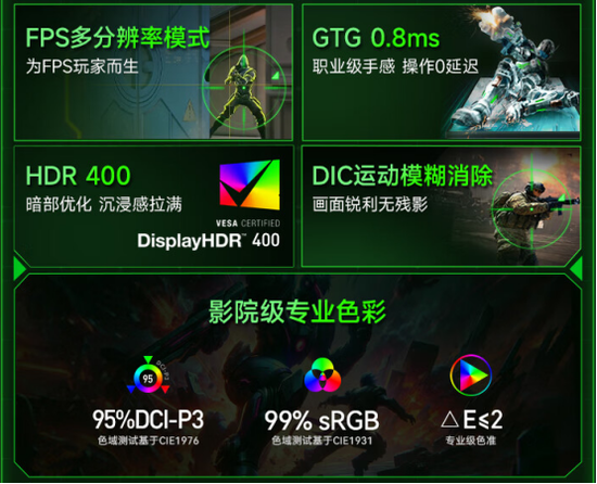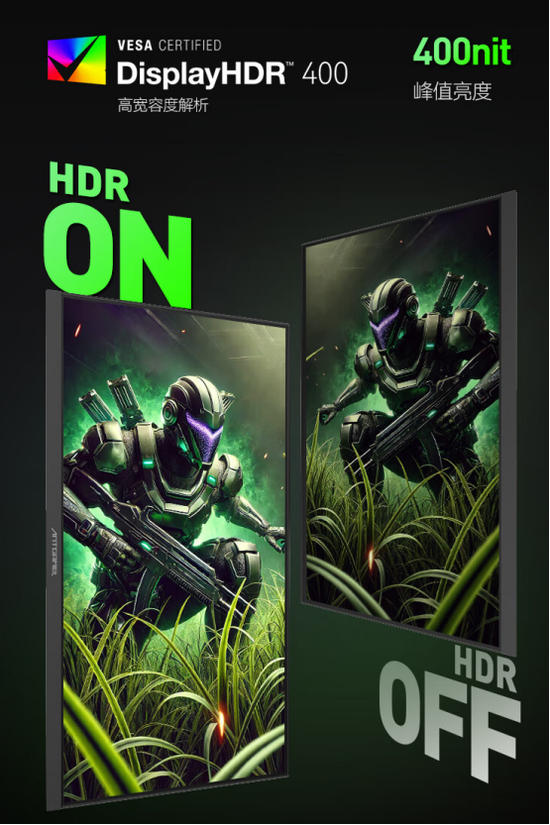 在色彩表现上,蚂蚁电竞ANT257PF色域覆盖达到了99%sRGB及95%DCI-P3,ΔE≤2的色准使得画面色彩更加真实、鲜艳,无论是电竞比赛中的激烈场景,还是观看高清电影、进行图形设计等,都能满足用户对色彩的高要求。同时,该显示器还获得了VESA DisplayHDR 400认证,峰值亮度达到400nits,能够在各种光照条件下呈现出出色的画质,展现更为丰富的画面色彩和对比度,为玩家带来沉浸式的视觉享受。