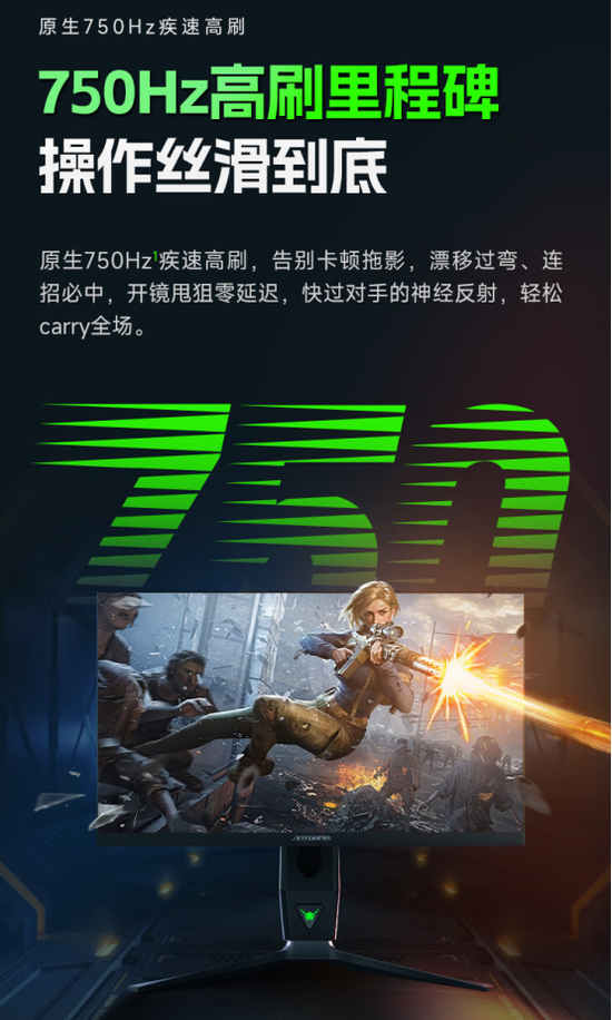 蚂蚁电竞ANT257PF采用24.5英寸Fast TN面板,分辨率1920×1080,其核心突破在于原生750Hz刷新率——这一数据远超当前主流电竞显示器的360Hz,甚至高于华硕、卓威等品牌近期发布的610Hz产品。据悉,这款显示器的Fast TN面板来自惠科自研,凭借其独特的液晶排列结构,以极致响应速度和超高刷新率成为电竞显示领域的标杆技术。相较于IPS或VA屏,TN屏在动态画面中几乎消除拖影,确保玩家在《CS:GO》《无畏契约》等快节奏游戏中捕捉每一帧细节。