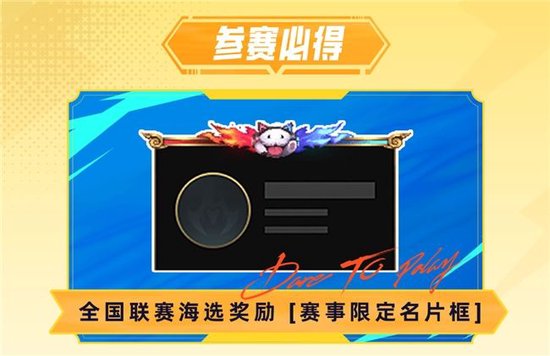 只要报名成功并完赛至少1场,就能获得独特的全国联赛海选限定名片框,让你在游戏内独具一格,彰显你的参赛荣耀。