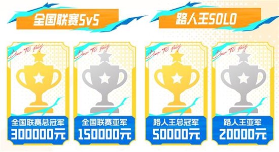 5V5团队赛:全国联赛总冠军高达300000元,亚军为150000元。