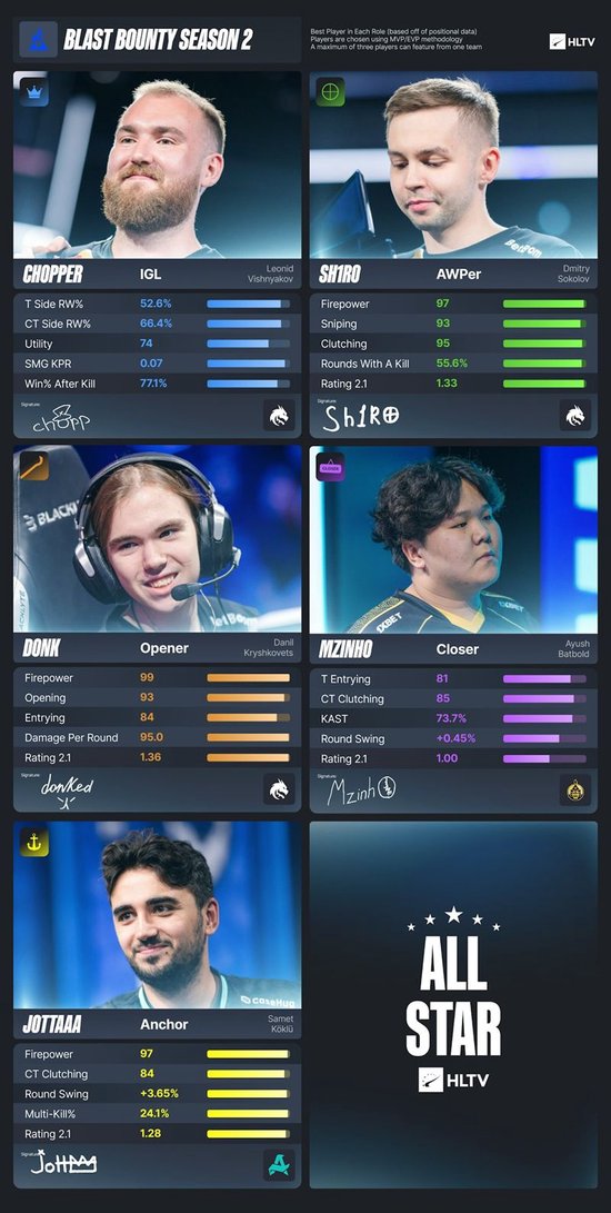 2025 BLAST 赏金赛S2最佳选手排名(按顺序)
