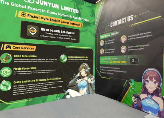 在本次展会上,领先的游戏网络优化服务商——奇游加速器,首次以官方参展商身份亮相便成为展会焦点。本次展会中国参展厂商数量创历史新高,达50家,较2024年增长32%,标志着中国游戏全球化进程迎来重要里程碑。