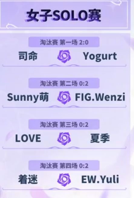 淘汰赛阶段,大众赛道选手与专业赛道选手之间的实力差距初现端倪。四场淘汰赛分别是司命对阵YOGURT、SUNNY萌对阵FIG.WENZI、LOVE对阵夏季以及着迷对阵EW.YULI。专业赛道的选手凭借出色的打法战略和专业的训练,在比赛中展现出明显优势。司命、FIG.WENZI、夏季、EW.YULI分别以2-0的总比分干净利落地击败大众赛道的选手,晋级半决赛。