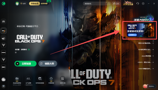 备受关注的FPS佳作《使命召唤:黑色行动7》已正式定档,将于11月14日在全球范围内发售。不过玩家无需苦等发售日,官方将在10月3日至10月9日期间,开启一场时长144小时的多人游戏公开Beta测试,方便大家提前上手熟悉游戏操作与玩法机制。接下来给大家带来使命召唤黑色行动7测试开启,迅游免费送测试资格的方法!