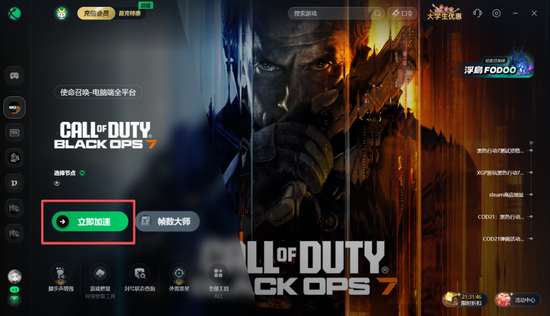 《使命召唤:黑色行动7》刚更新上线时,可能会因为游玩人数过多导致服务器出现卡顿、延迟高、掉线等问题困扰。这时我推荐大家使用【迅游加速器】来解决这些问题。它搭载AI双引擎与2000+专属节点,能精准优化游戏连接,自动匹配最优节点,降低跨区延迟,让玩家流畅冲锋,尽情享受射击快感 。
