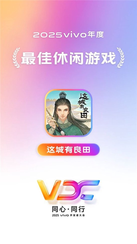 新作《重生日记》荣获「2025vivo年度最受期待游戏」;经典古风悠闲养城手游《这城有良田》双喜临门,一举摘得「2025vivo年度优秀小游戏」和「2025vivo年度最佳休闲游戏」两项殊荣。
