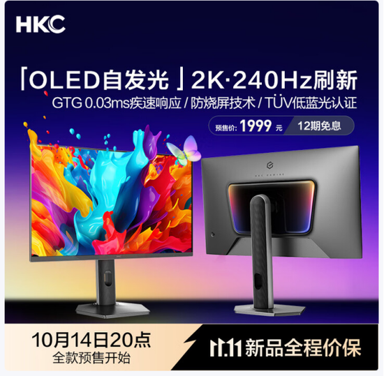 尽管拥有诸多旗舰级配置,HKC GS27QKS的定价却十分亲民。目前该显示器在电商平台已开启预售,首发预售价仅为1999元。这一价格远低于市面上同规格的OLED显示器,甚至比许多高端的Fast IPS或Mini LED显示器还要便宜。对于预算有限但又渴望体验OLED画质优势的用户来说,GS27QKS无疑是一个极具吸引力的选择。它不仅降低了高端显示技术的门槛,也为整个显示器市场注入了新的活力。
