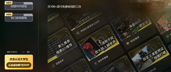 除了网络加速外,迅游此次还打破了常规,无需购买SVIP,即可使用所有工具,里面包括外置准星、MOD助手、脚步声增强等热门实用工具,现在对校园用户全面开放。