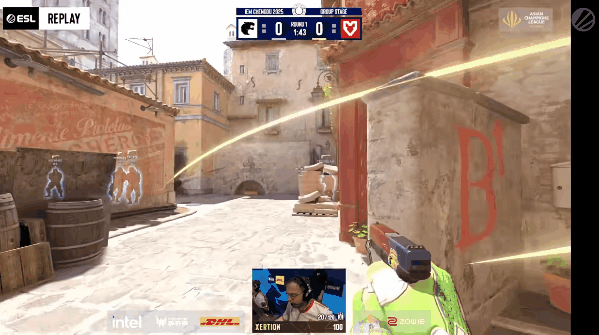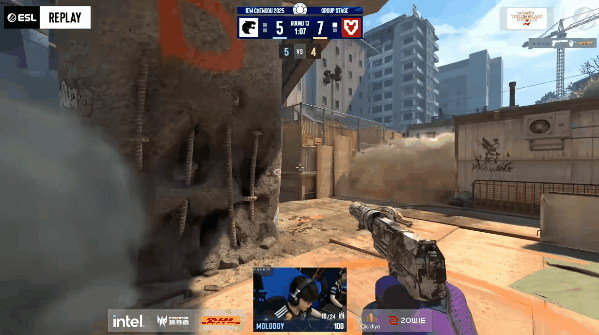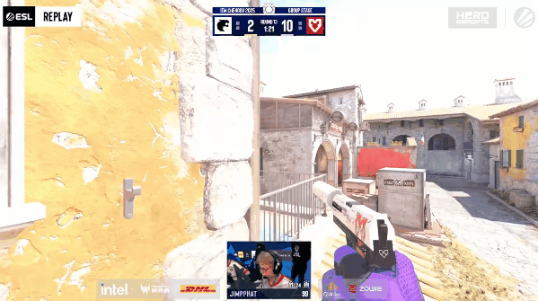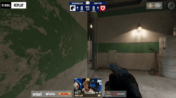 手枪局MOUZ先做进攻,土匪集合下红楼梯,Brollan先拿首杀后被补,yuurih绕后回防拿下三杀成功赢下手枪局。