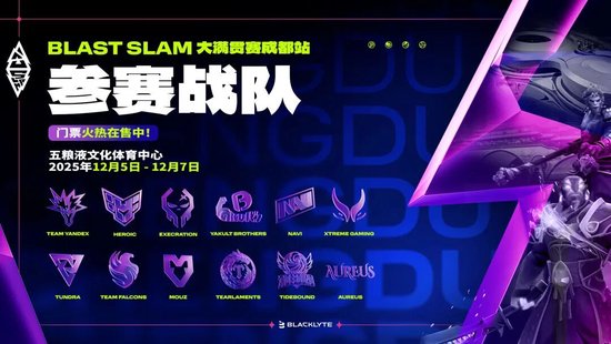 BLAST Slam V将于11月25日~12月7日进行,12支战队将争夺100万美元的总奖金。本次比赛参赛战队包括6支直邀战队、5支预选赛出线战队以及1支通过投票决出的“主场英雄战队”。