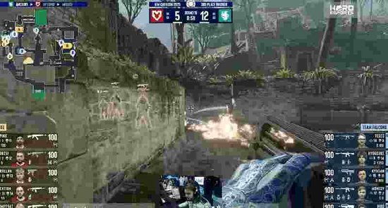 次回合猎鹰直接强起,老鼠选择直接提速一波B,但是猎鹰3B防守交叉火力取得成效,其余CT迅速回防,双方互换人头最终Niko拿下最后一个人头,成功拿下强起局,比分10-4。第17回合,龙哥无视防守烟直接黑屋猜出斜坡帮助队友中路拿下双杀,直接打乱老鼠阵型,随后Spinx单摸B斜也被击杀,老鼠直剩Brollan也无能为力,猎鹰12-5拿下赛点。第18回合,猎鹰摆3A2B防守,老鼠背水一战选择集合爆A,尼孩+kyousuke的交叉火力瞬间把冲出烟雾弹的老鼠众人直接蒸发,猎鹰一鼓作气13-5直接拿下图一。