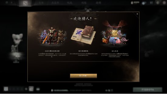 联动活动以“英雄狩猎”为核心玩法,玩家需要通过在游戏对局内击杀敌对英雄来获取打造材料,不同英雄会奖励不同的打造材料,每个潜在目标都会列出材料以及这些材料用来打造的套装,对局获胜会获得所有列出的材料,失败则只会获得一部分,玩家通过游玩即可收集六套《怪物猎人》经典铠甲的DOTA2版本。